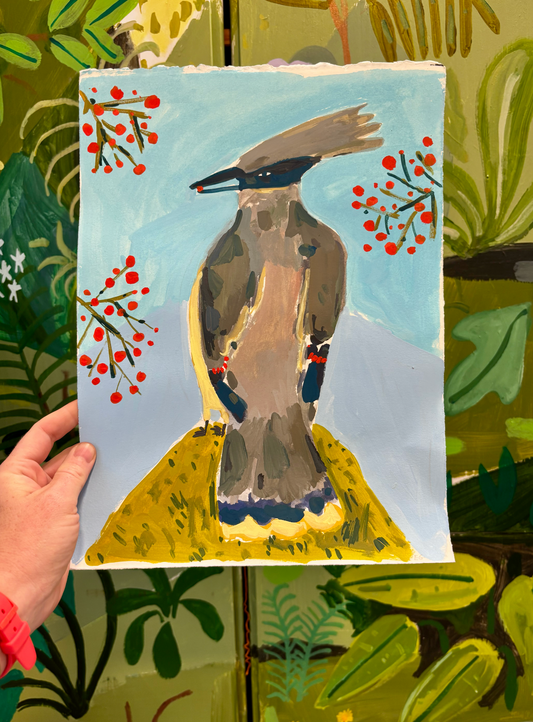 Cedar Waxwing bird, painting on paper